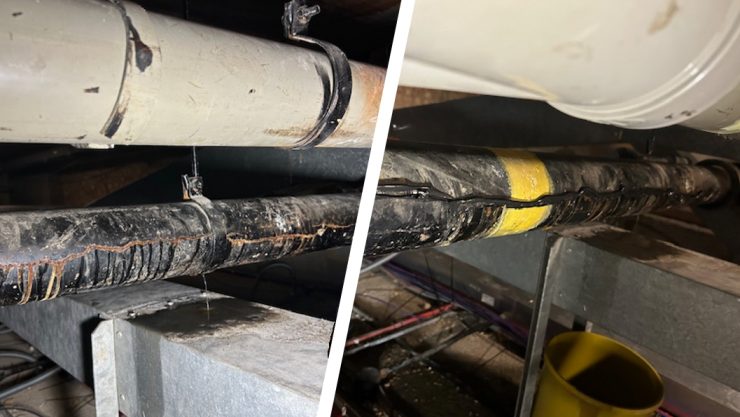 Water starting to drip from a roof above a ward alerted the hospital to a problem. The maintenance team accessed the loft space and discovered a significant horizontal crack approximately two-metres long in the cast iron pipe through which wastewater was leaking.