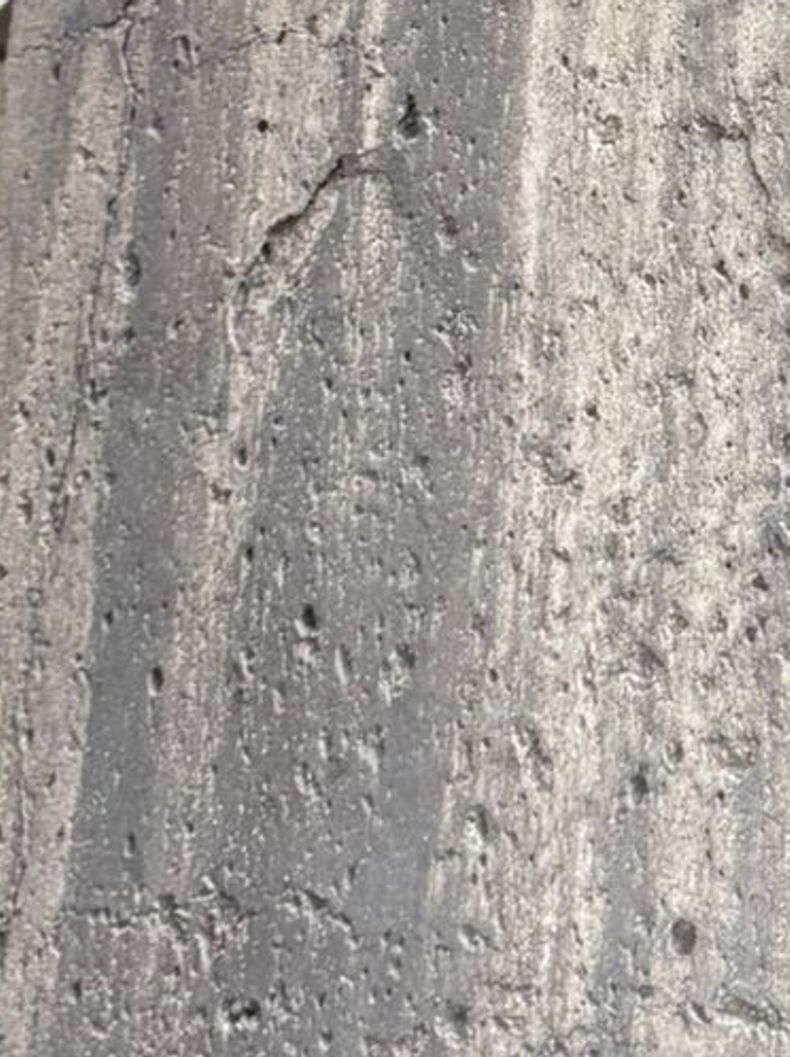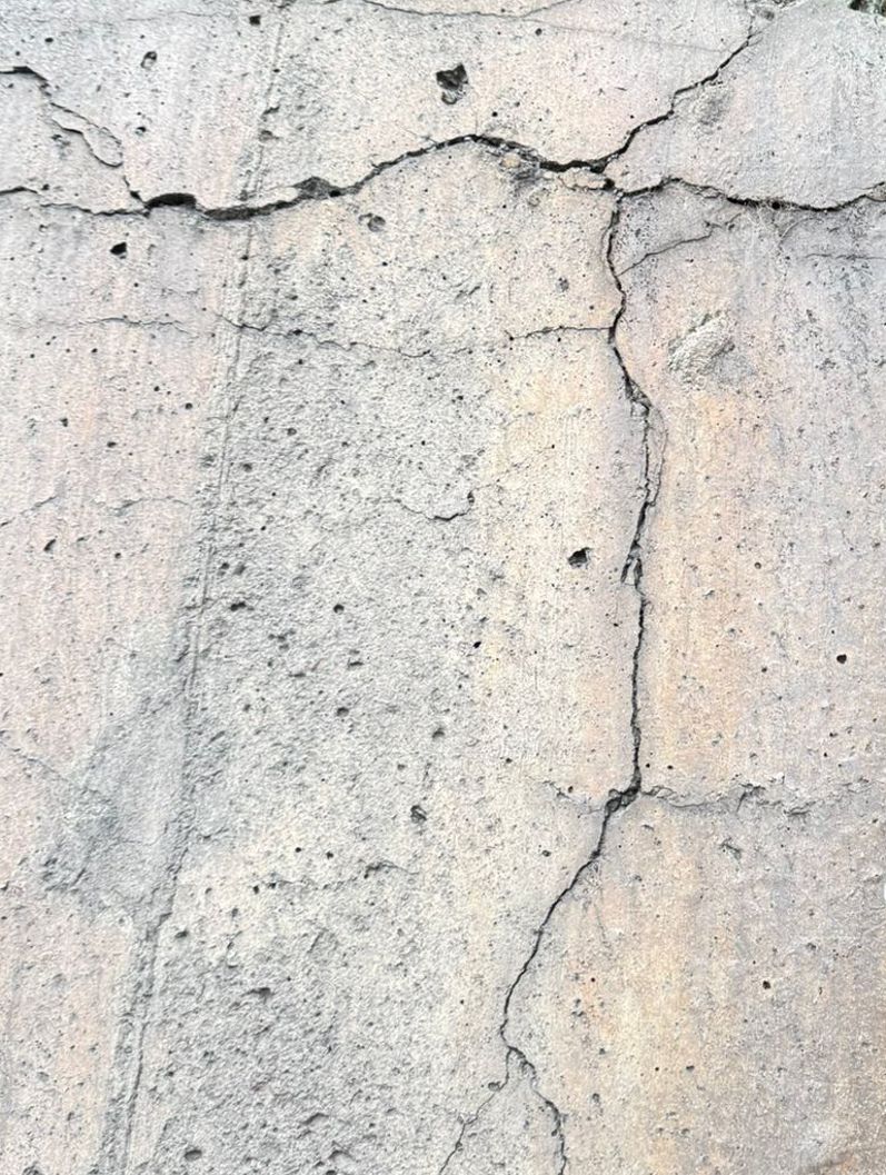 Within five years, unsightly cracks began appearing alongside visible surface damage where large chunks of C6 concrete had broken off and crumbled away.