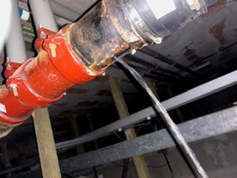 Corrosion caused a large 80mm hole to appear in the pipe. Whenever wastewater was expelled from the bathroom, significant amounts would pour out from the hole.