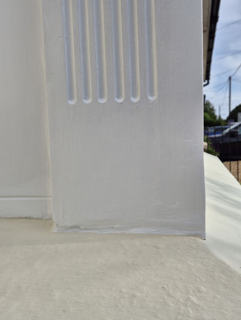 Before curing, the putty was smoothed off using a metal spreader and a little water. Once it had fully hardened, it was lightly sanded down and then painted the same white colour as the sash window for a seamless restoration.
